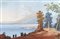 Scuola napoletana del secolo XIXGolfo di Napoli con monaci Gouache su carta
