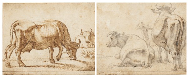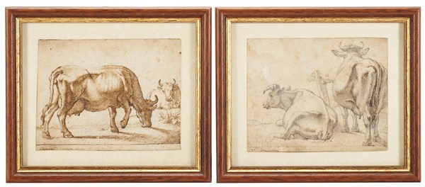 Scuola del nord Europa degli inizi del secolo XVIII Coppia di disegni raffigu