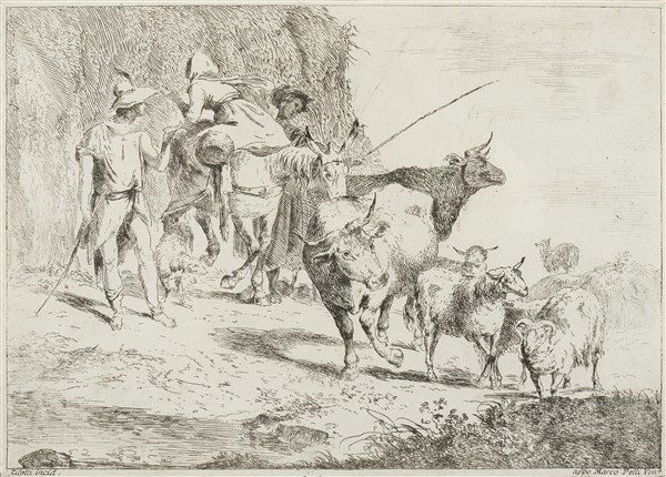 Domenico Bernardo Zilotti Pastori con armenti acquaforte mm 210x292 all'impront