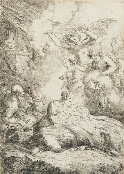 Bartolomeo Biscaino Natività con angeli acquaforte rifilata all'interno dell'im