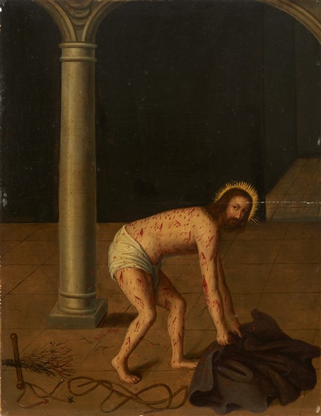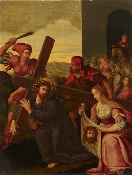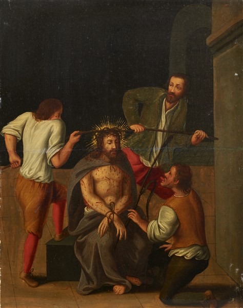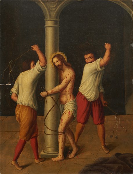 Four oil paintings on panel depicting the Flagellation, the Crowning with Thorns and the Ascent to Calvary