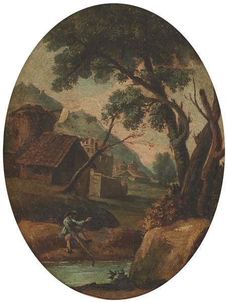 Paesaggio con villaggio e figure e Paesaggio fluviale con pescatore