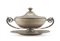 Zuppiera con coperchio e présentoir in argento a coppa baccellata e biansata a