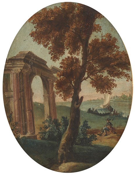 Lot 549 | Scuola veneta del secolo XVIII Paesaggio invernale e Paesaggio con viandante