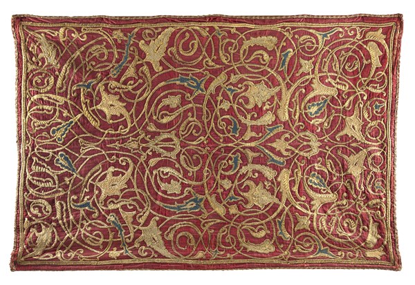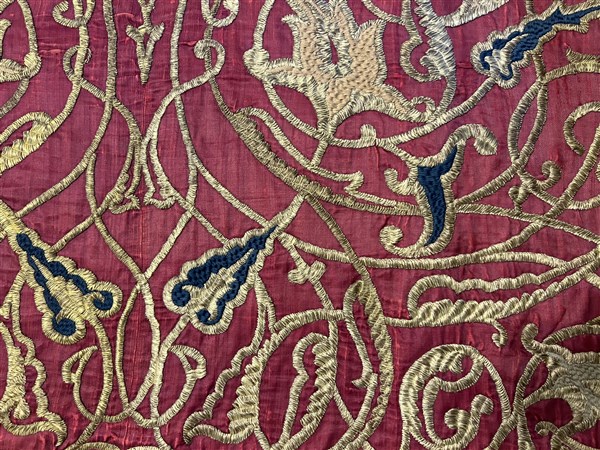 Arazzo dell'Impero Ottomano, secolo XVIII. Ricamato su fondo di raso di seta co