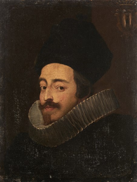 Scuola genovese del secolo XVII Ritratto di gentiluomo Olio su tela, cm 81x5