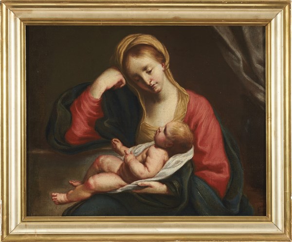 Scuola romana della fine del secolo XVII Madonna con Bambino Olio su tela, c