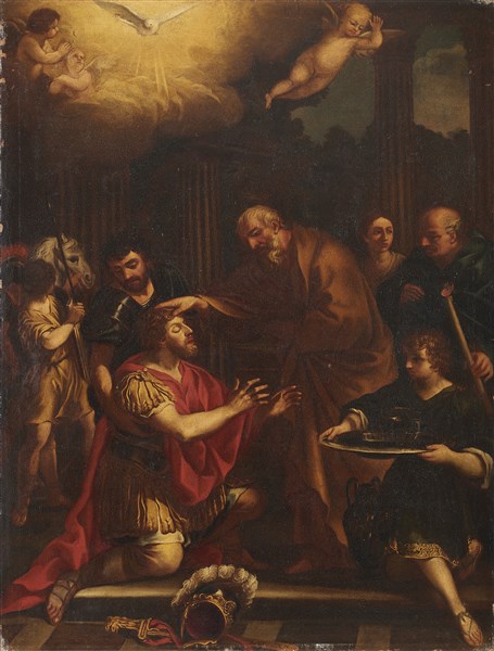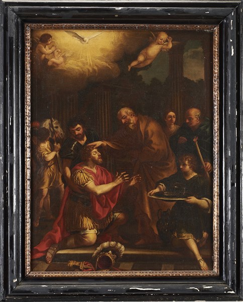 Lot 598 | Scuola del secolo XVIII, da Pietro da Cortona Anania battezza San Paolo ridon