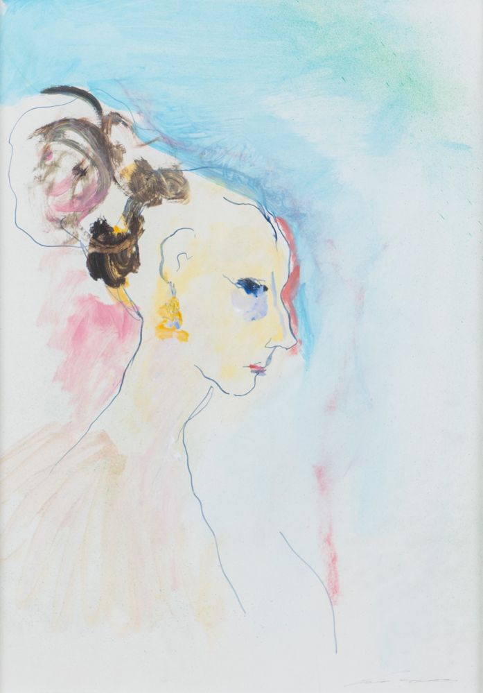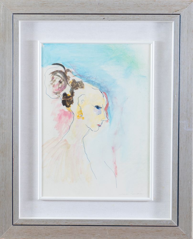 ERNESTO TRECCANI (Milano 1920 - 2009) "Donna di profilo". Olio e tecnica mista su carta. Cm 48,5x34,5. Opera firmata in basso a destra Treccani. Opera accompagnata da autentica su fotografia a firma del pittore. Al retro reca scritta. Pubblicazione: Ernesto Treccani, Oleos recentes, ed. Preciousa, Barcelona.