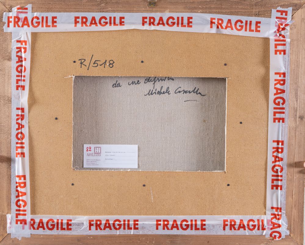 MICHELE CASCELLA (Ortona 1892 - Milano 1989) "Portofino". Olio su tela. Cm 35x50. Opera firmata in basso a sinistra Michele Cascella. Al retro reca scritta per autentica Da me dipinto, a firma Michele Cascella. Al retro reca etichetta della società italiana Arteleader, Cisinello Balsamo. Opera accompagnata da autentica su fotografia a firma del pittore Michele Cascella, con numero R/518.