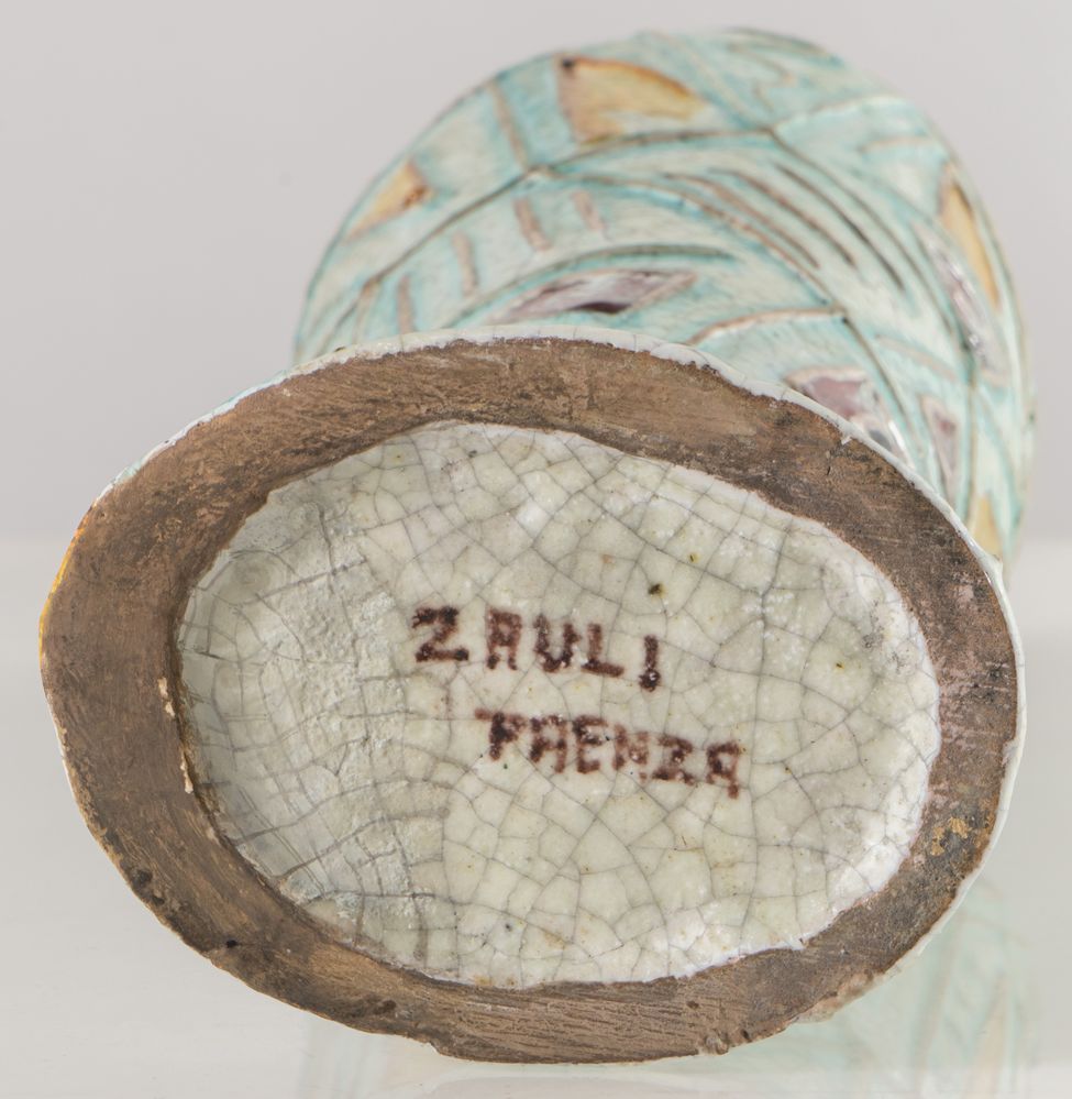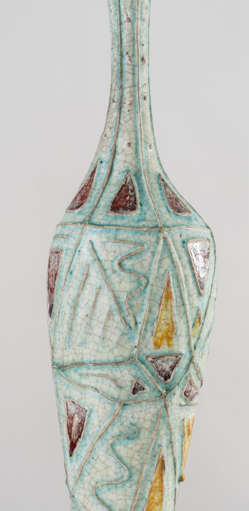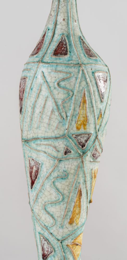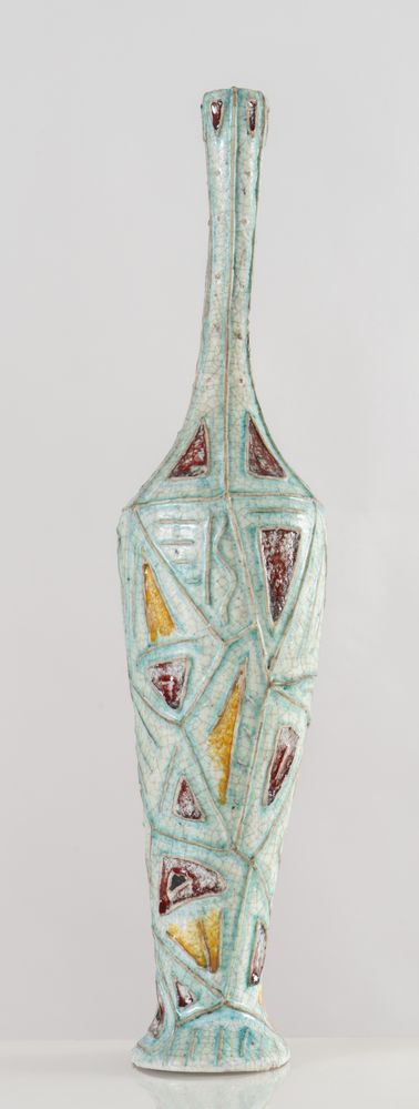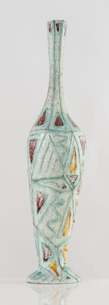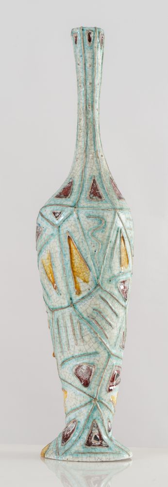 CARLO ZAULI (Faeza 1926 - 2002) Vaso in gres dipinto. Anni '50. Cm 57x12,5x13. Opera firmata sotto la base Zauli Faenza.