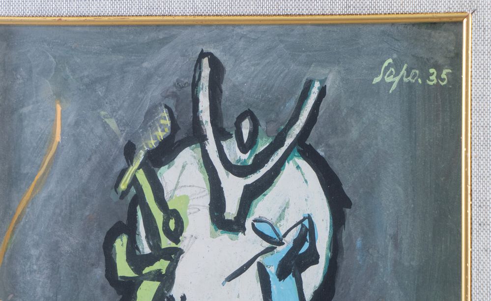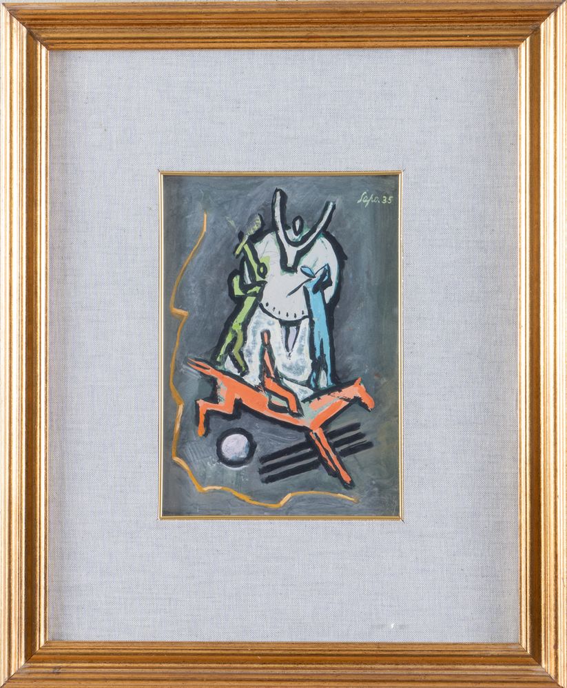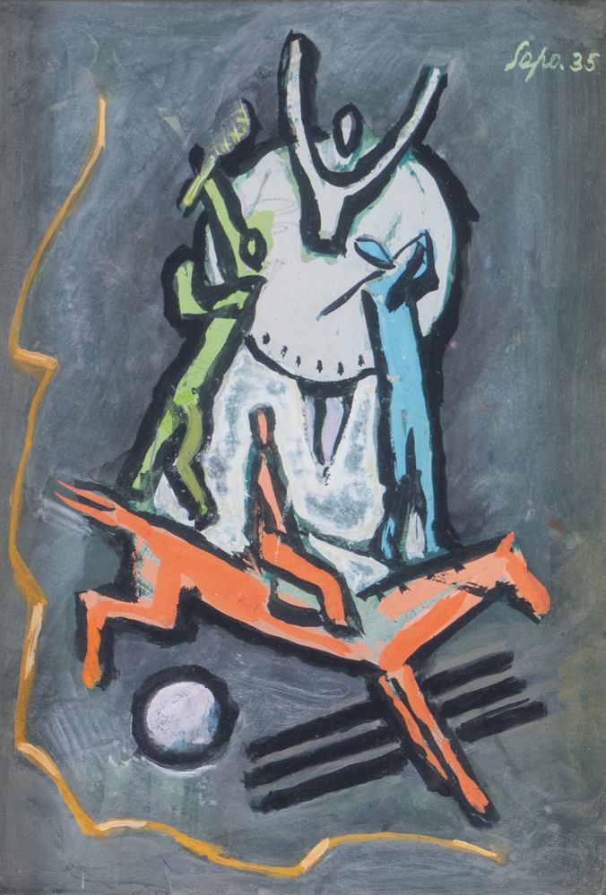 SEVERO SEPO POZZATI (Comacchio 1895 - Bologna 1983) "Senza titolo", 1935. Olio e tecnica mista su cartone. Cm 27,5x19,5. Opera firmata e datata in alto a destra Sepo '35.