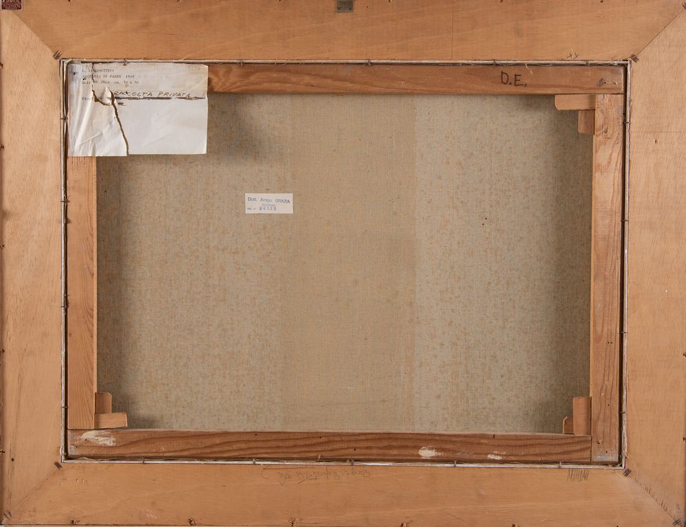 GIOVANNI CIANGOTTINI (Umbertide 1912 - Bologna 1998) "Fantasia di paese", 1969. Olio su tela. Cm 50x70. Opera firmata e datata in basso a destra Ciangottini 1969. Al retro reca etichetta.