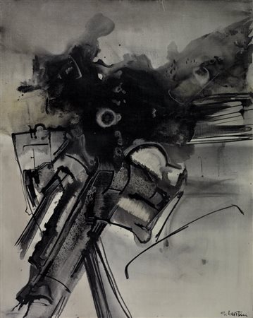 GIANNI BERTINI Pisa 31/07/1922 - Caen (Normandia) 08/07/2010 Atlante Chanteresse, 1957 olio su tela cm. 92x73, firma in basso a destra, titolo, firma, anno ed etichetta dello Studio Gariboldi (MI) al retro, dichiarazione d'autenticità dell'artista su foto.
