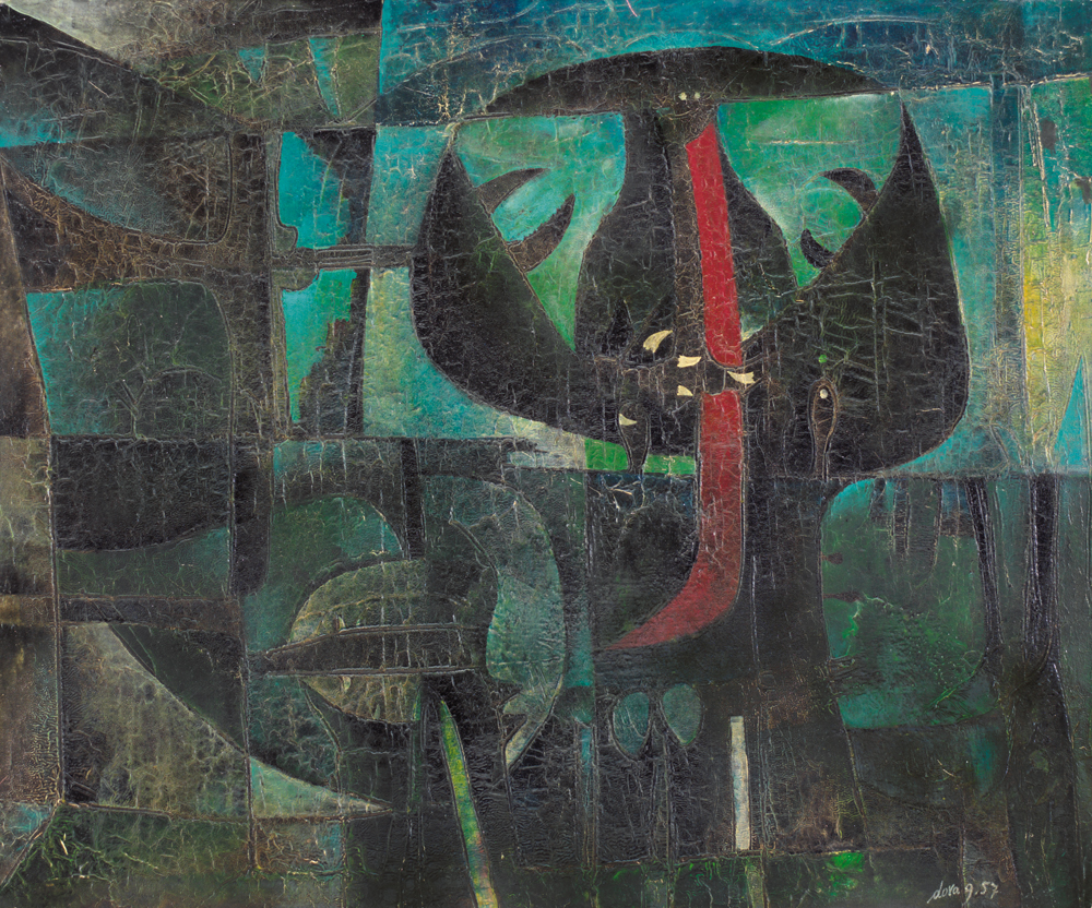 GIANNI DOVA Roma 08/01/1925 - Pisa 1991 Personaggio in finestra, 1957 olio su...