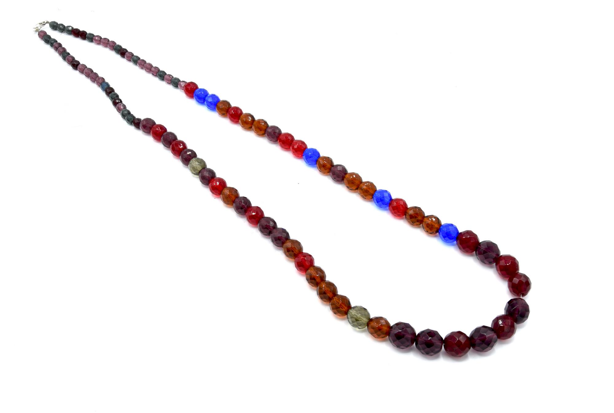 COLLANA CON SFERE SFACCETTATE COLORATE SUI TONI DEL ROSSO E DEL BLU lunghezza...