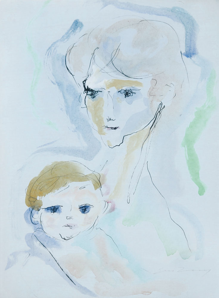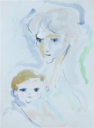 ERNESTO TRECCANI Milano 26/08/1920 - Milano 27/11/2009 Maternità acquerello su carta intelata cm. 40x30, firma in basso a destra e al retro, opera inserita nell'Archivio/Catalogo delle opere originali di Ernesto Treccani N 004664 come da certificato allegato.