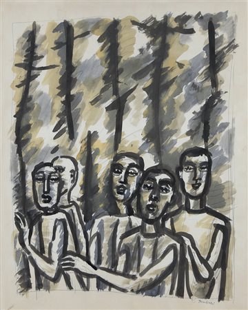 ORFEO TAMBURI Jesi (An) 28/05/1910 - Parigi (Francia) 15/06/1994 Senza titolo tecnica mista su carta cm. 64x51, firma in basso a destra, dichiarazione d'autenticità dell'artista su foto, certificato di garanzia ed autenticità dello Studio d'Arte Martini (BS) allegato.