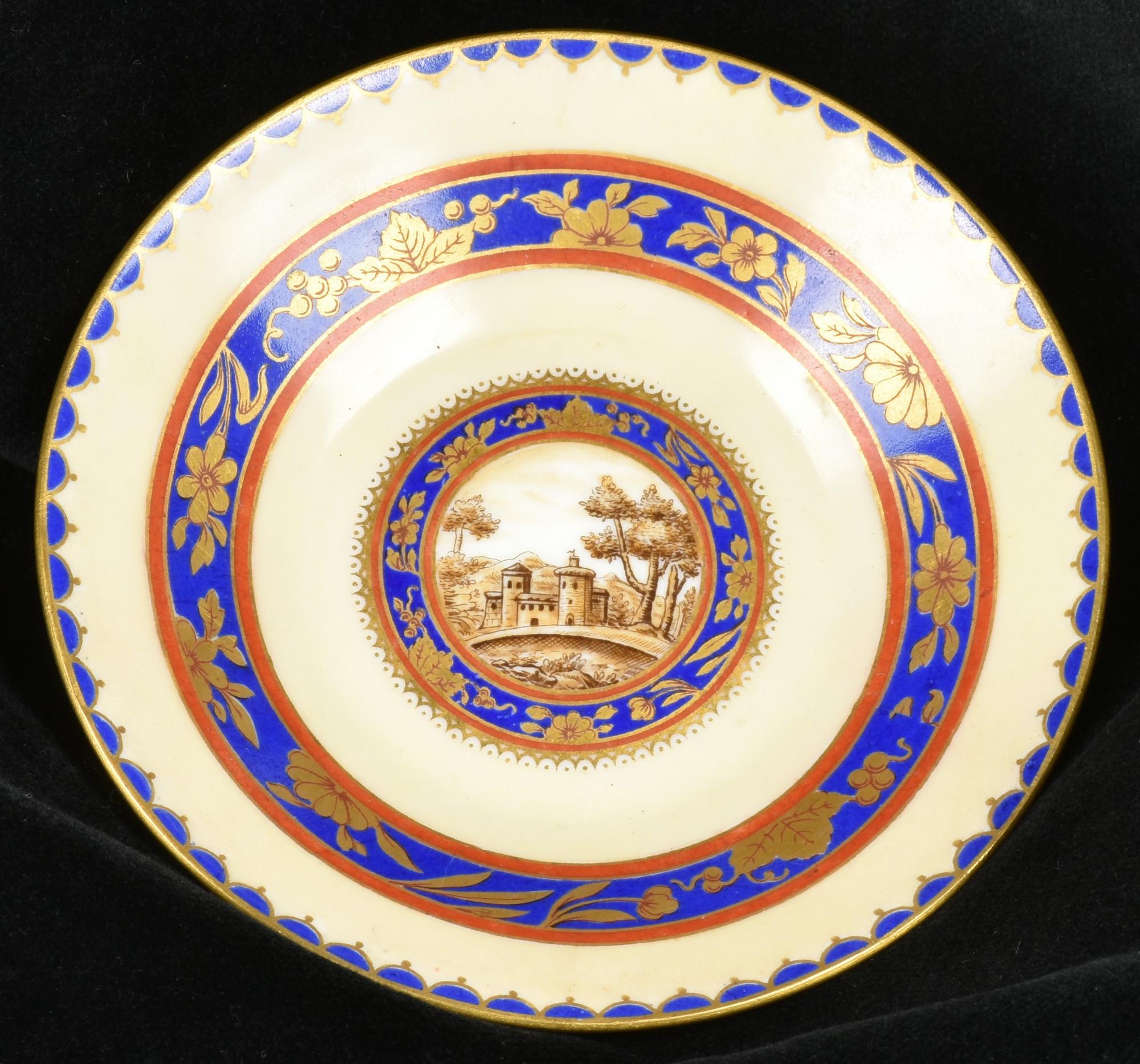 PIATTINO in ceramica, raffigurante motivi decorativi e una veduta di...