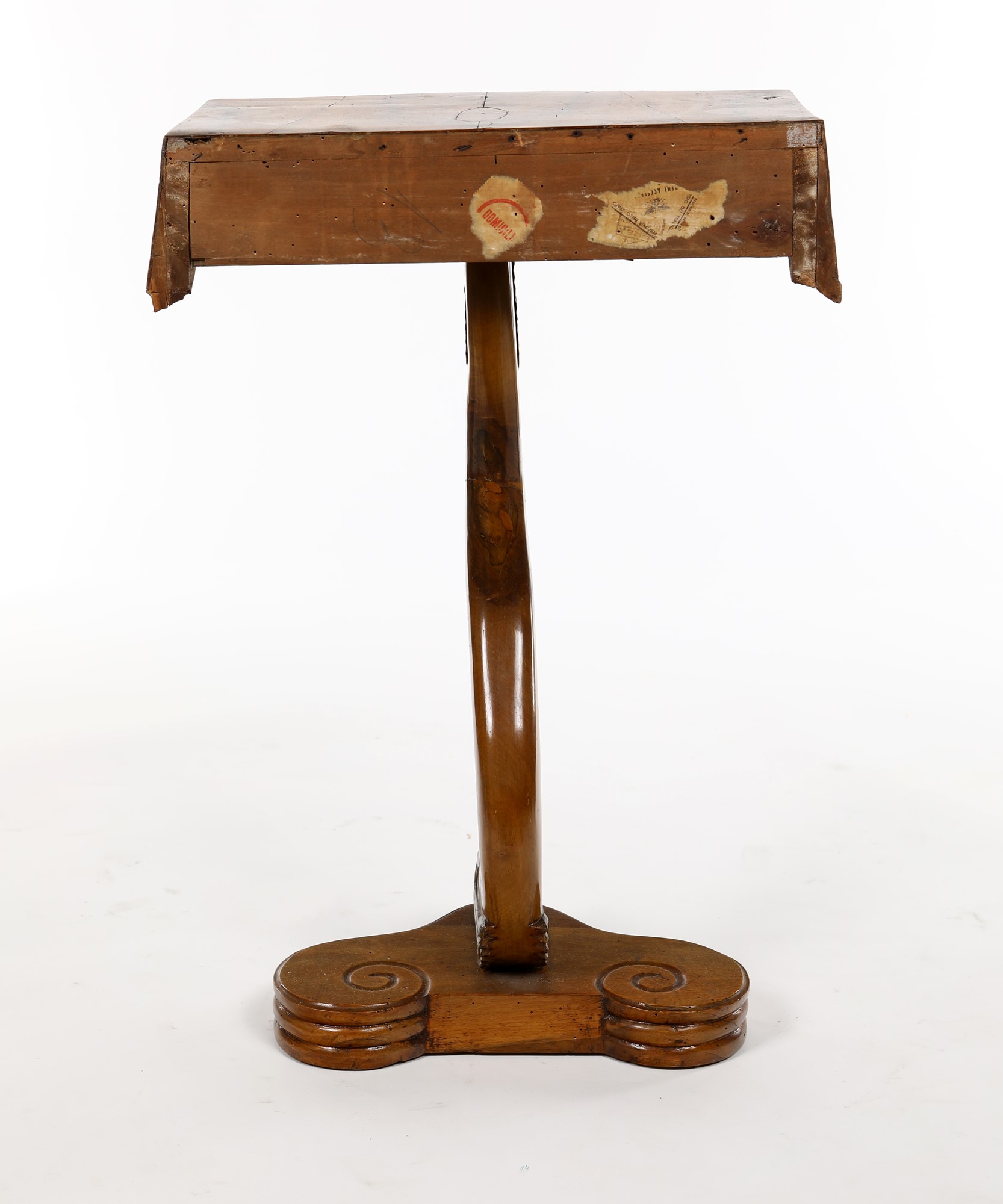 Coppia di piccole console in radica, XX secolo caratterizzate da fascia...