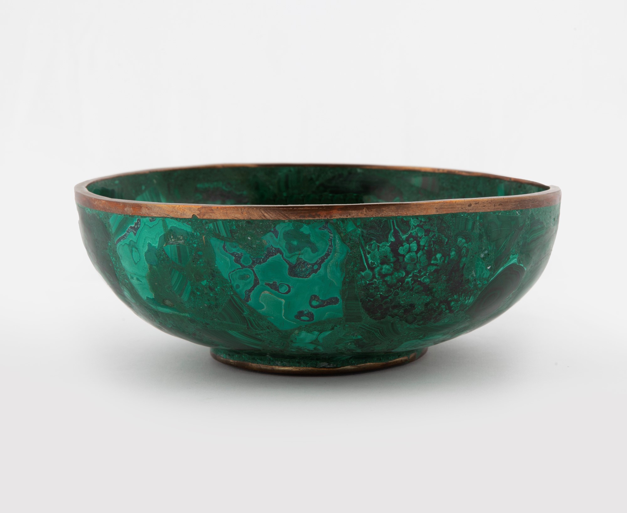 Lot 34 | Ciotola in malachite di forma circolare con piede ed orlo rifiniti in metallo...