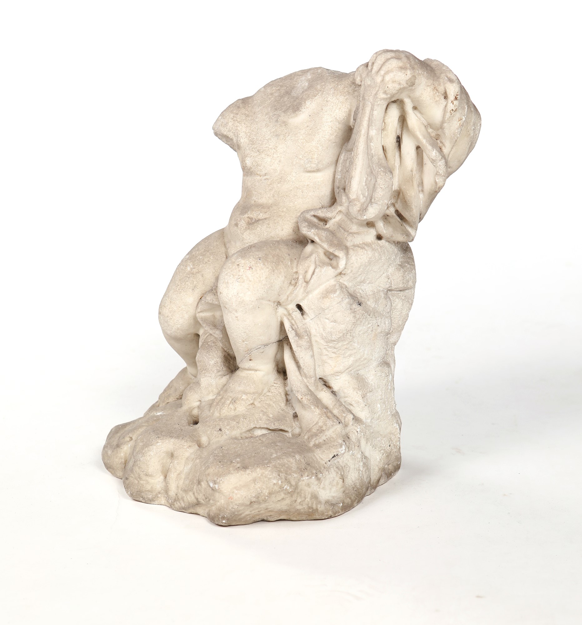 Scultura acefala in pietra, XVII secolo raffigurante Orfeo ritratto seduto...