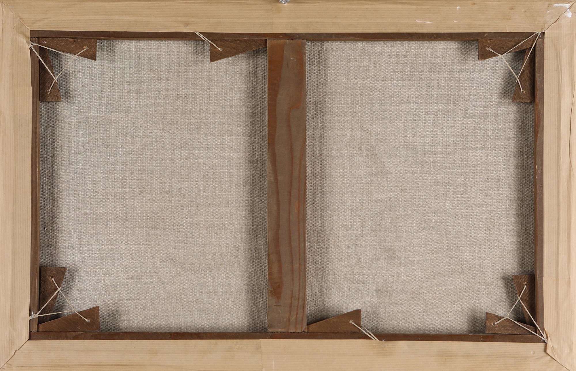 Pittore del XVIII secolo Veduta di paesaggio lacustre olio su tela, cm 51x77...