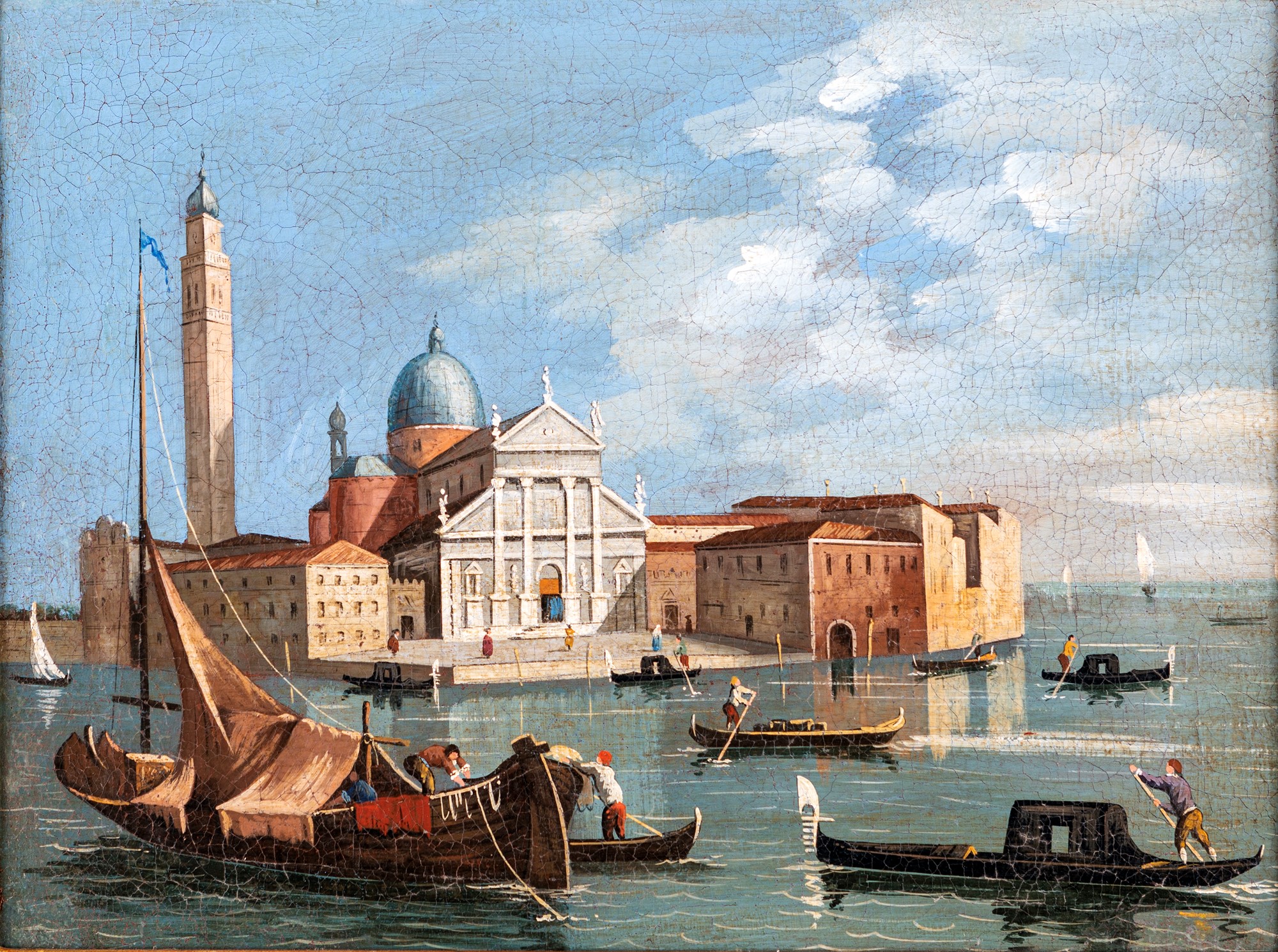 Scuola Veneta del XIX secolo Veduta di San Giorgio Maggiore Olio su tela, cm...