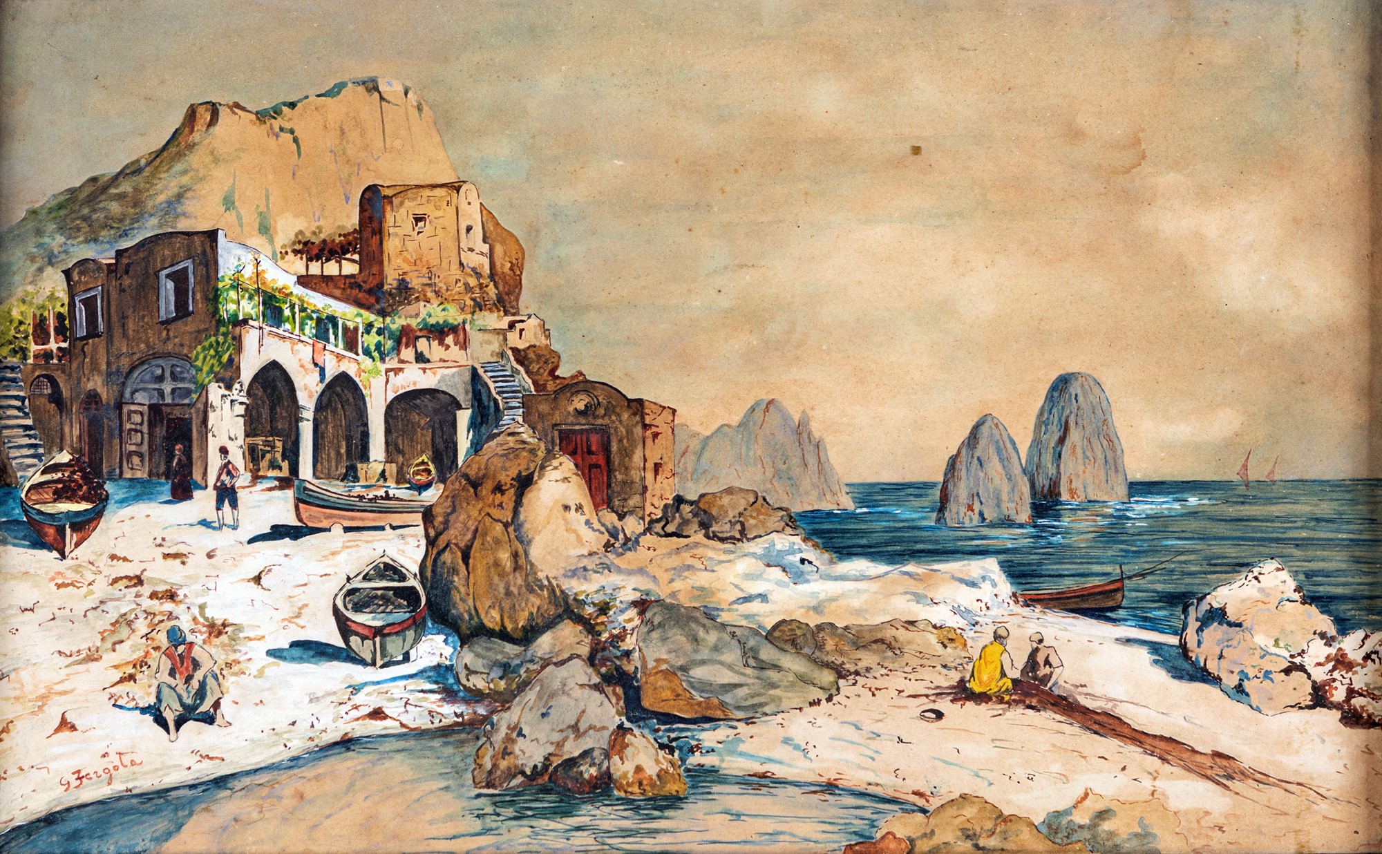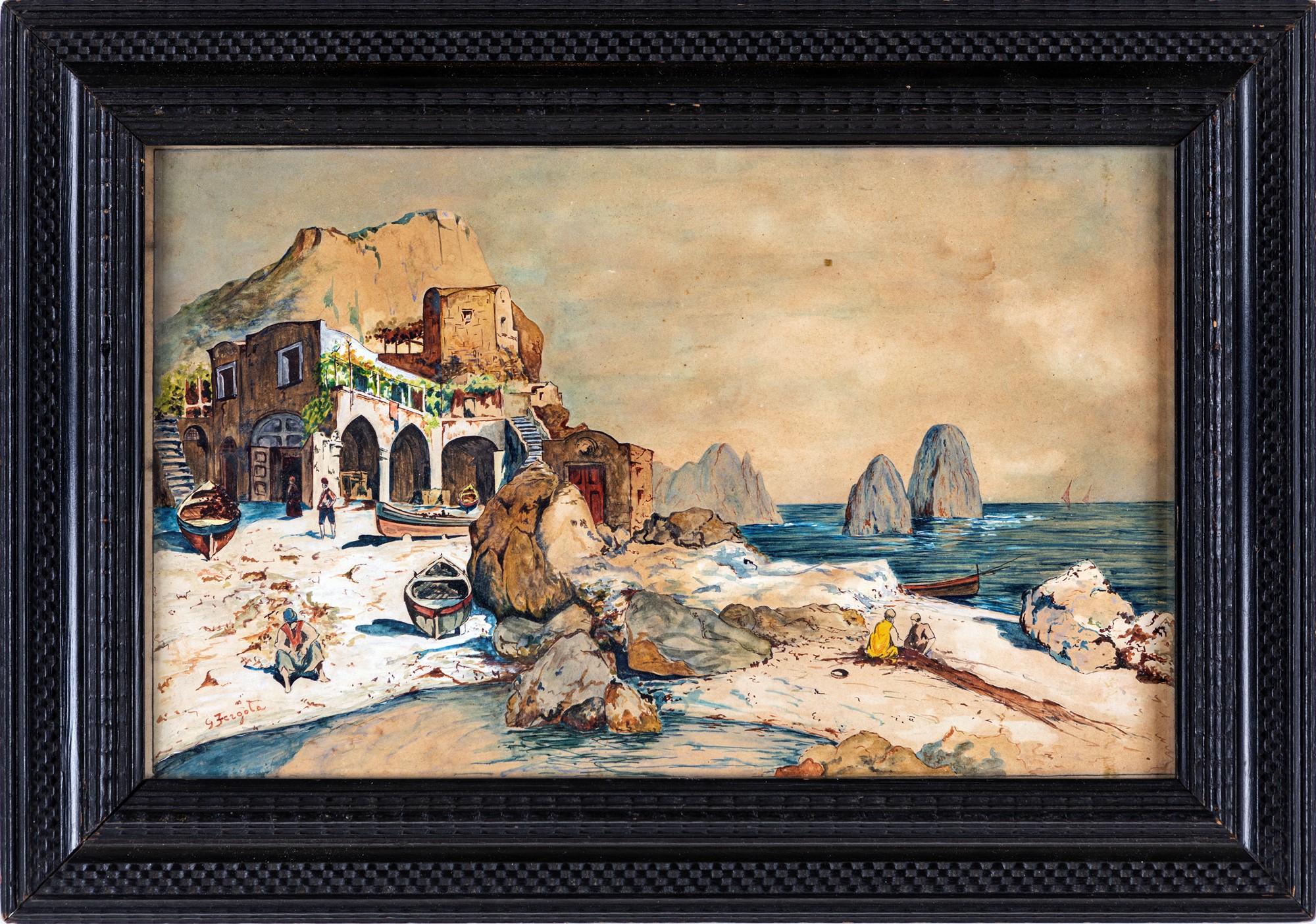 Salvatore Fergola Paesaggio caprese tempera su carta, cm 27x41 in cornice...