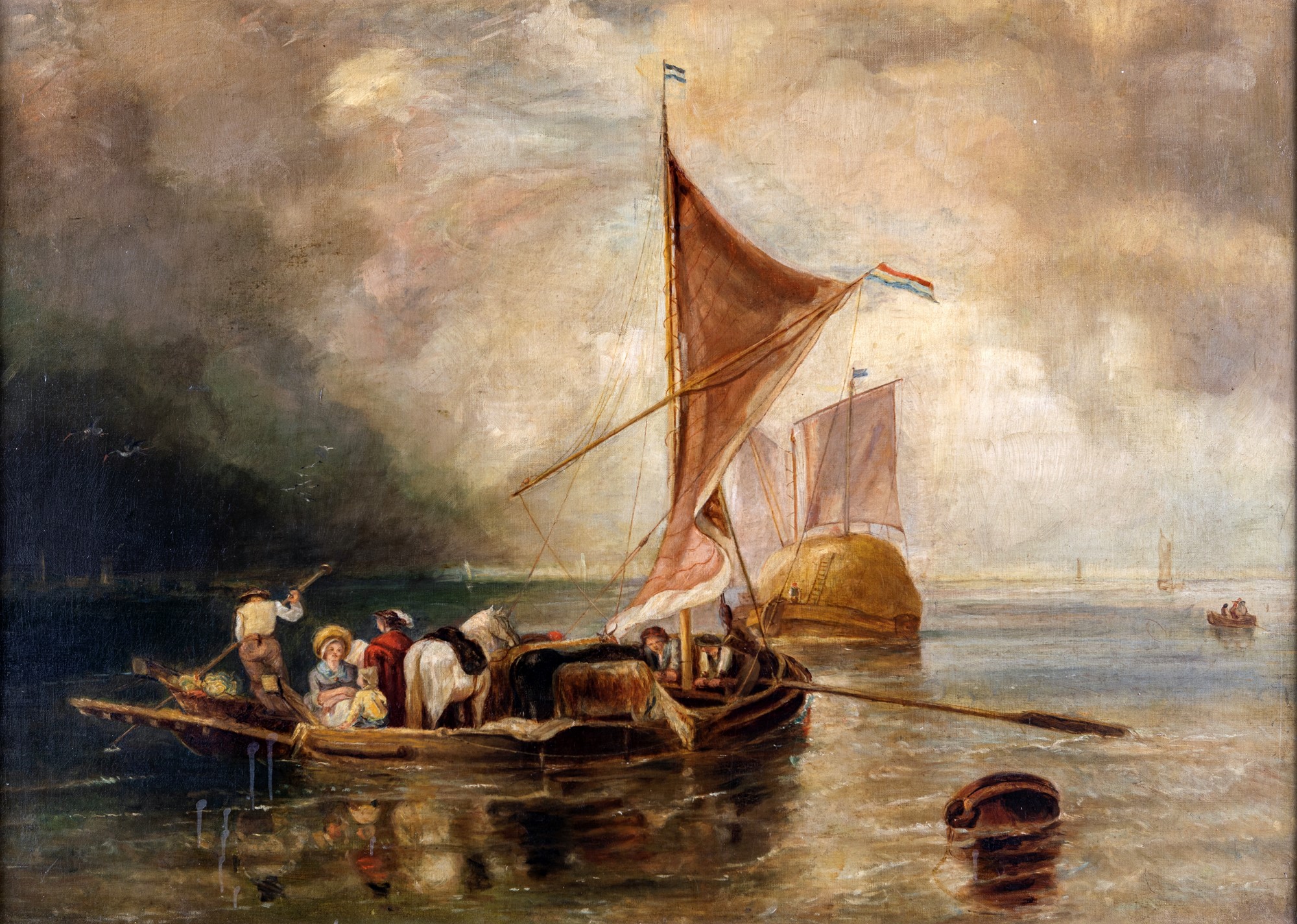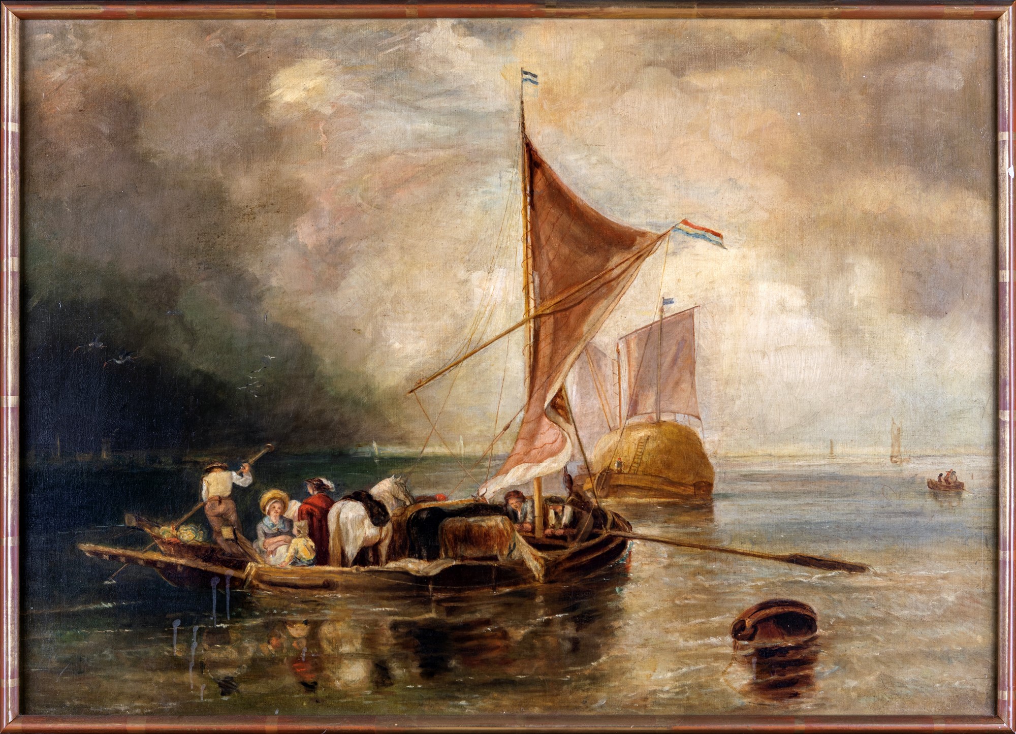 Anonimo del XIX secolo Marina con imbarcazioni olio su tela, cm 76 x 105 - in...