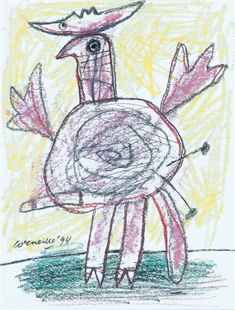 CORNEILLE Liegi 1922 Orseau et lune, 1994 pastelli su carta cm.24x17, firma e...