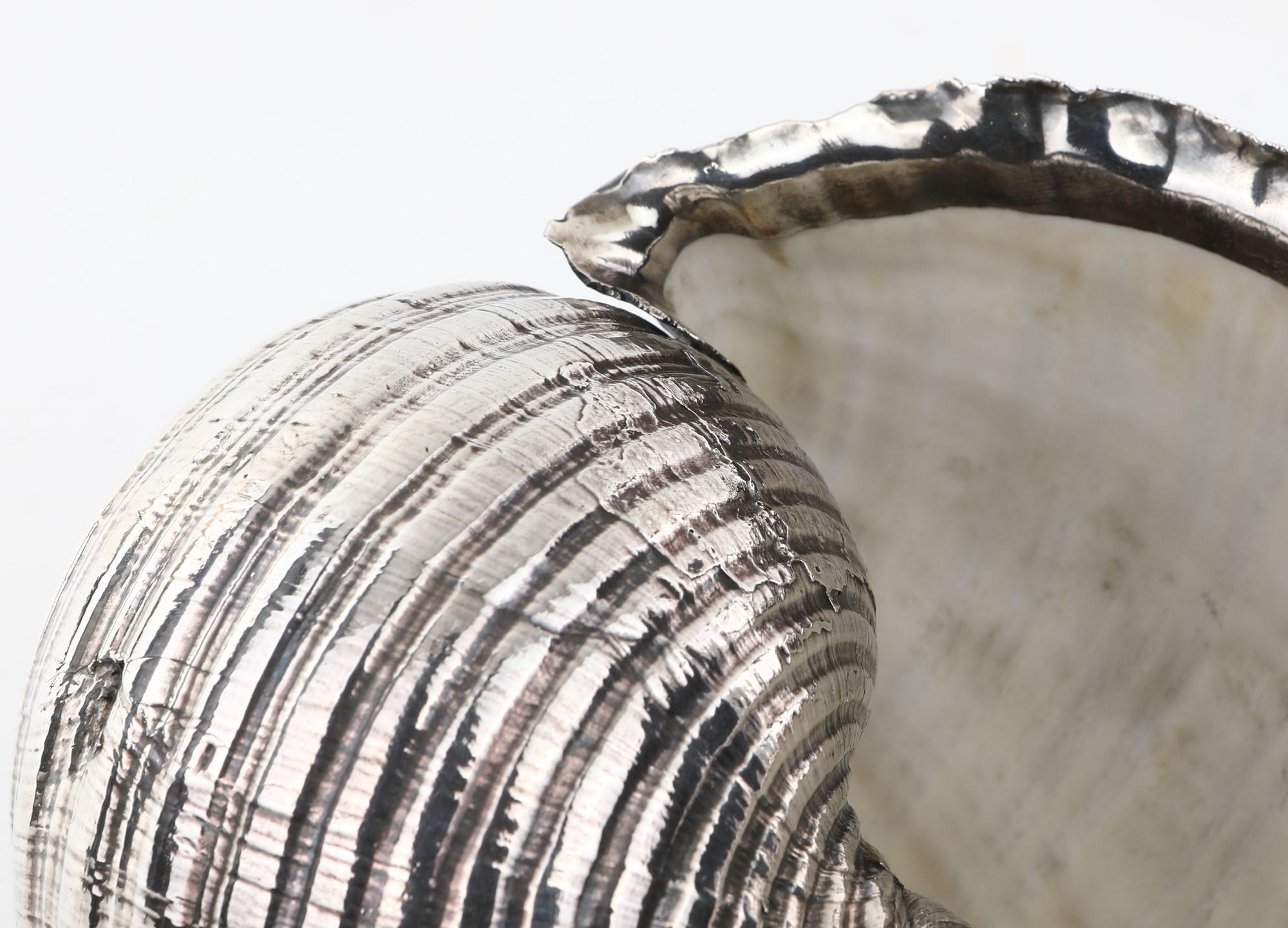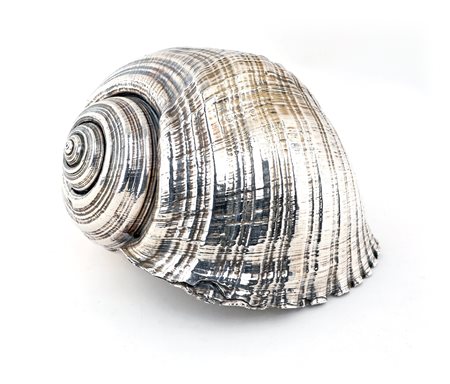 Conchiglia rivestita in lamina d'argento , cm 15x22x18