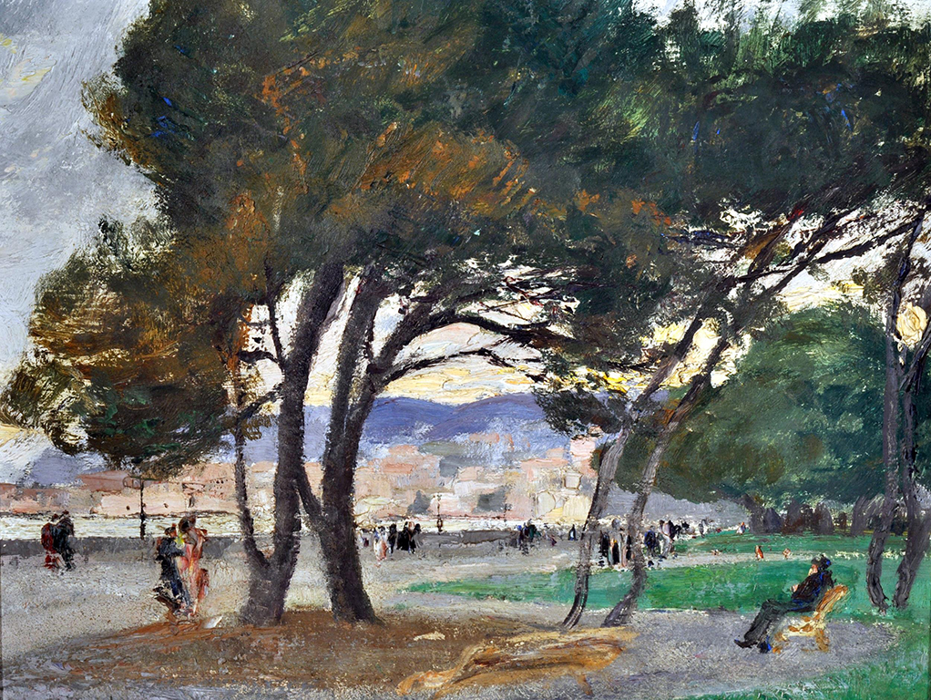 Colucci Vincenzo ( Ischia, NA 1898 - 1970) Villa Comunale olio su tavola, cm 38x50 non firmato