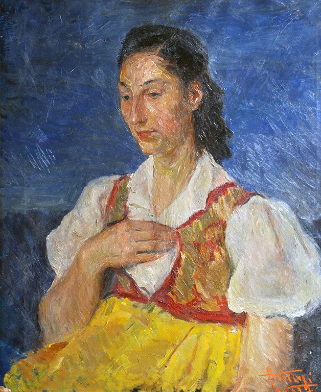 Striccoli Carlo (Altamura 1897 - Arezzo 1980) Figura olio su tela, cm 61x50 firmato e datato in basso a destra: Striccoli 4-9-937