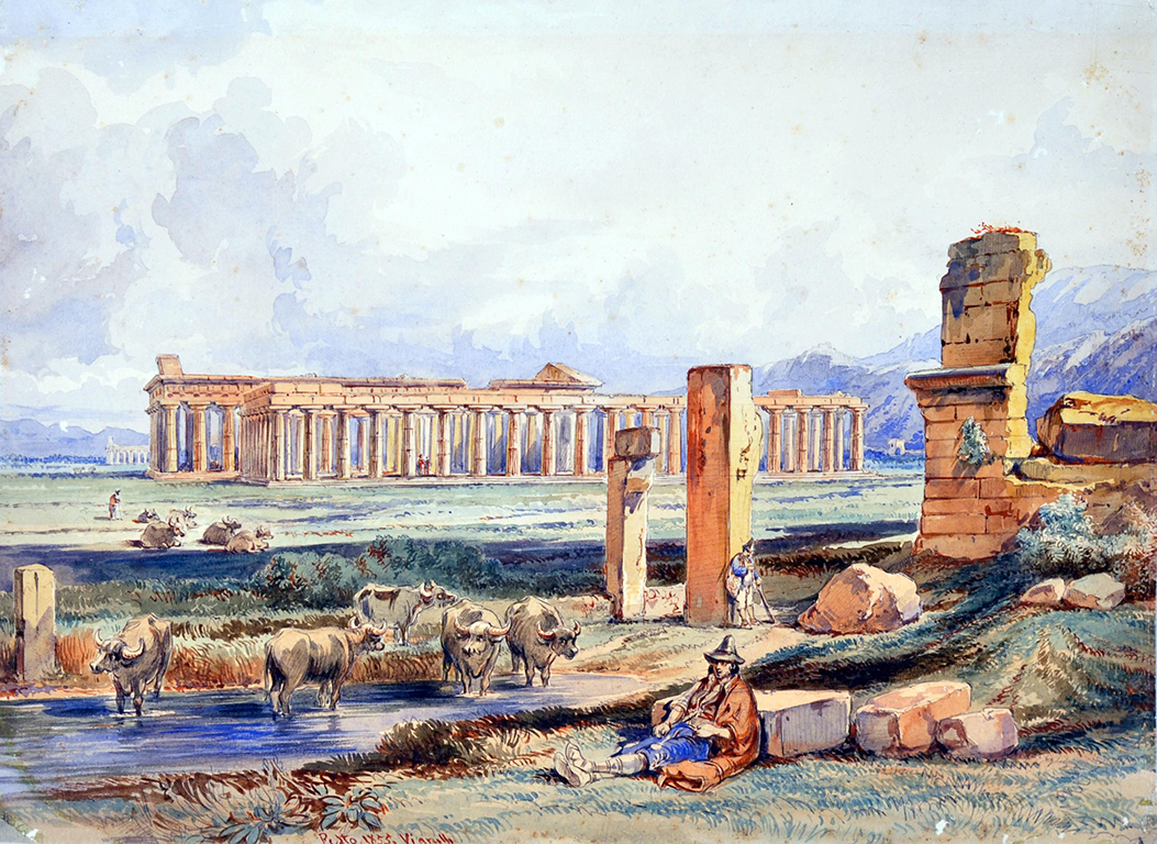 Vianelli Achille (Porto Maurizio, IM 1803 - Benevento 1894) Paestum acq. su carta, cm 24x32,5 firmato datato e iscritto in basso a sinistra: Pesto 1855 Vianelli
