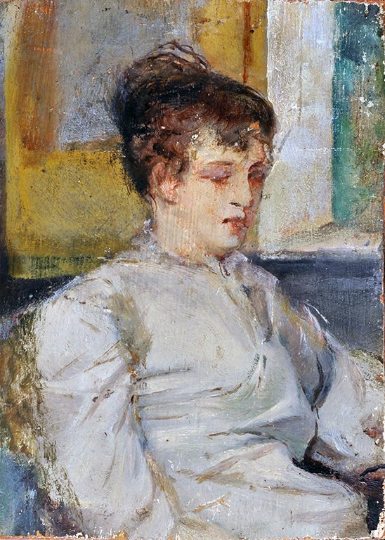 Anonimo de XIX secolo Ritratto femminile olio su tavola, cm 11x10