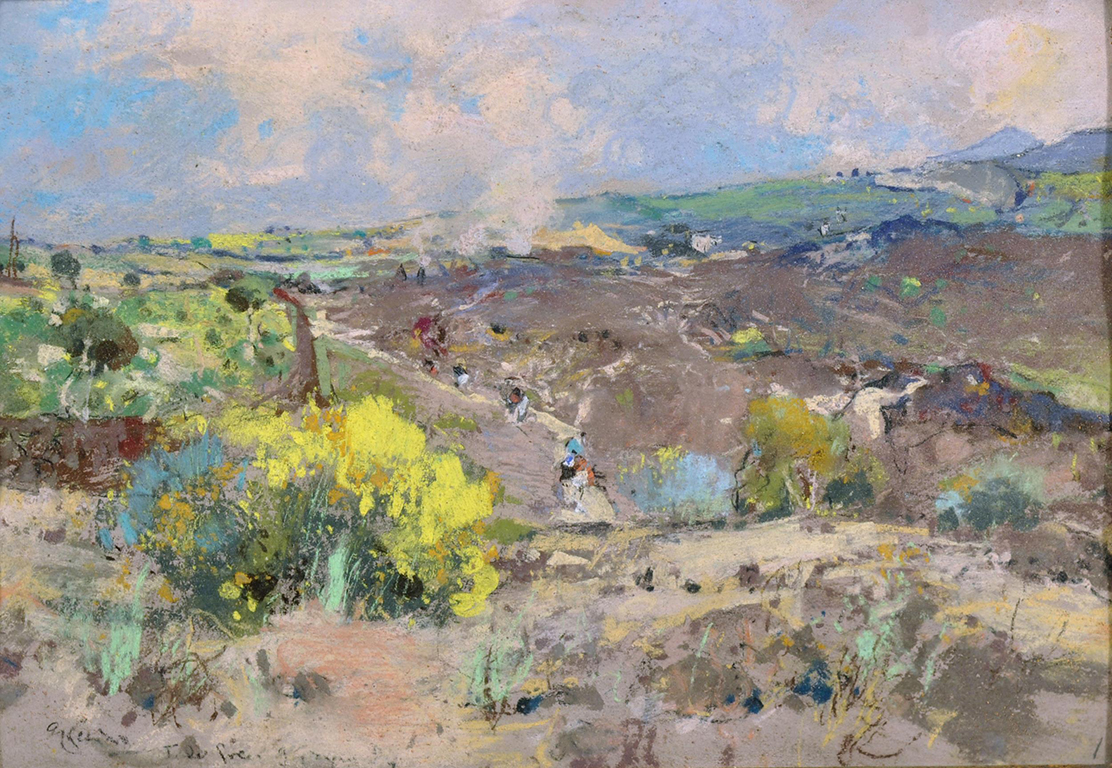 Casciaro Giuseppe (Ortelle, LE 1863 - Napoli 1941) Paesaggio pastelli su carta, cm 19x27,5 firmato e iscritto in basso a sinistra: G. Casciaro