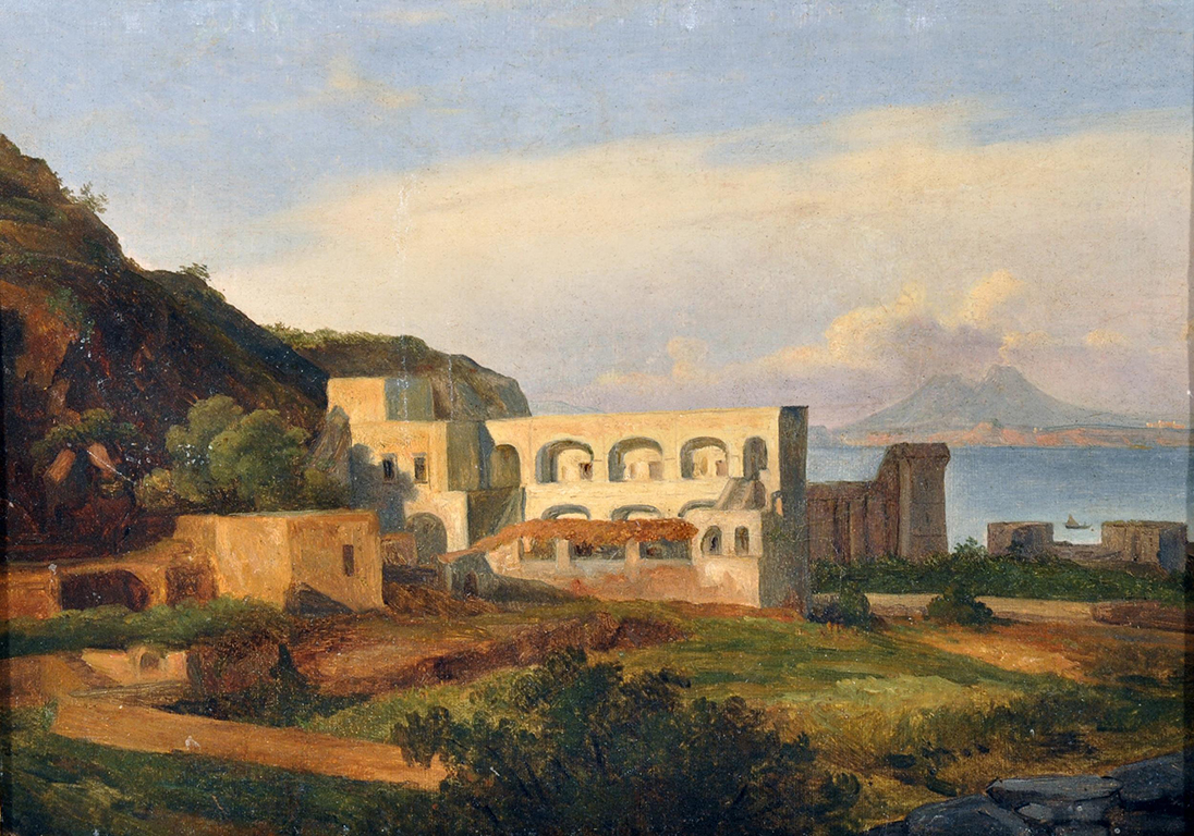 Remond Jean Charles Joseph (Parigi, 1795 - 1875) Veduta di Lacco Ameno Ischia olio su carta rip. su tela, cm 26,5x39 firmato in basso a sinistra: Remond L'opera è presente nela catalogo ragionato di Jean Charles Joseph Remond; Bibliografia: N D'Arbitrio,- L. Ziviello, Ischia nelle arti visive francesi dell'Ottocento, Ed. ad est dell'equatore, 2017 La Roche sur Yon pag 89
