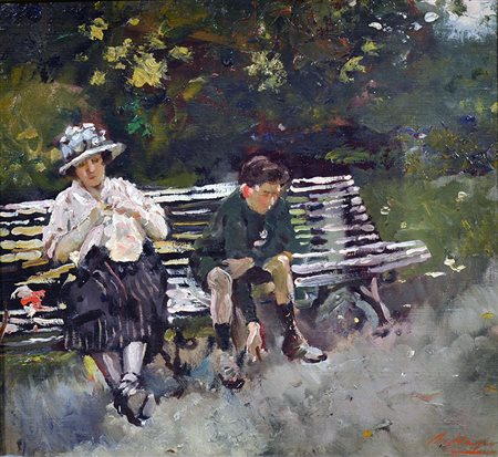 Ragione Raffaele (Napoli 1851 - 1925) Ragazzo pensoso olio su tela rip. su cartone, cm 34,5x37,5 firmato in basso a destra: R. Ragione a tergo cartiglio Galleria Mediterranea Napoli Provenienza: Gall. Mediterranea, Napoli; coll. privata, Bologna Esposizioni: Napoli 2022 Bibliografia: P. Ricci, Raffaele Ragione, Ed. Scientifiche Italiane, Na 1972 tav. 12; P.L. Di Giacomo – D. Di Giacomo, Raffaele Ragione (1851- 1925) impressionista napoletano, Pescara 2007, tav. L p. 102; Catalogo mostra"Artisti dell'800 in mostra" Ed. Vincent Napoli 2022 pag.92