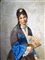 Tofano Edoardo (Napoli 1838 - Roma 1920) Donna con ventaglio olio su tavola, cm 100x74 firmato in basso a destra: E. Tofano