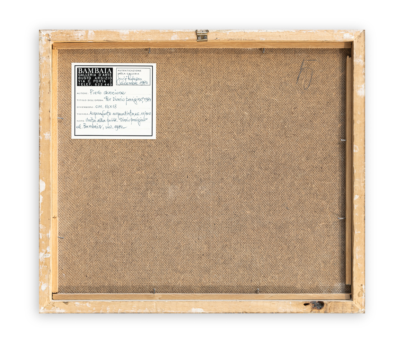 Etichetta e timbro della Galleria Bambaia (VA) al retro