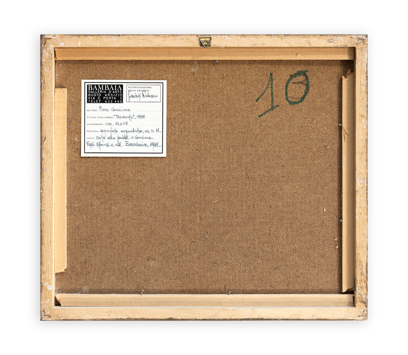 Etichetta e timbro della Galleria Bambaia (VA) al retro