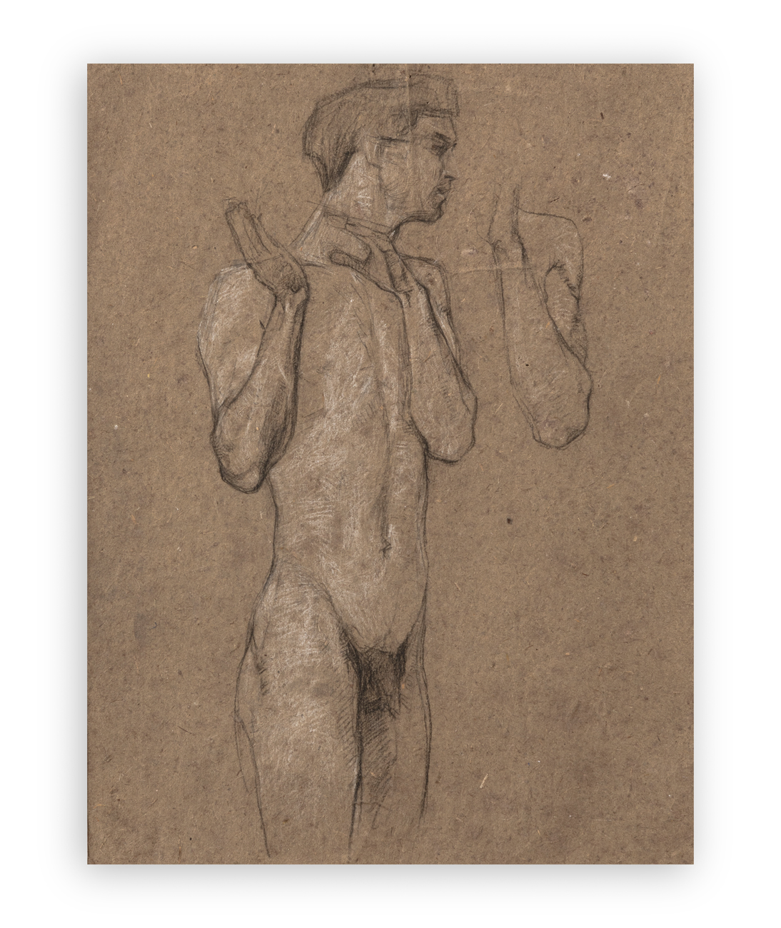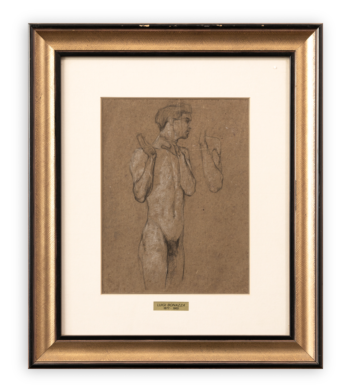 LUIGI BONAZZA (1877-1965) - Studio di nudo maschile che sorregge un oggetto, ca. 1905/1910