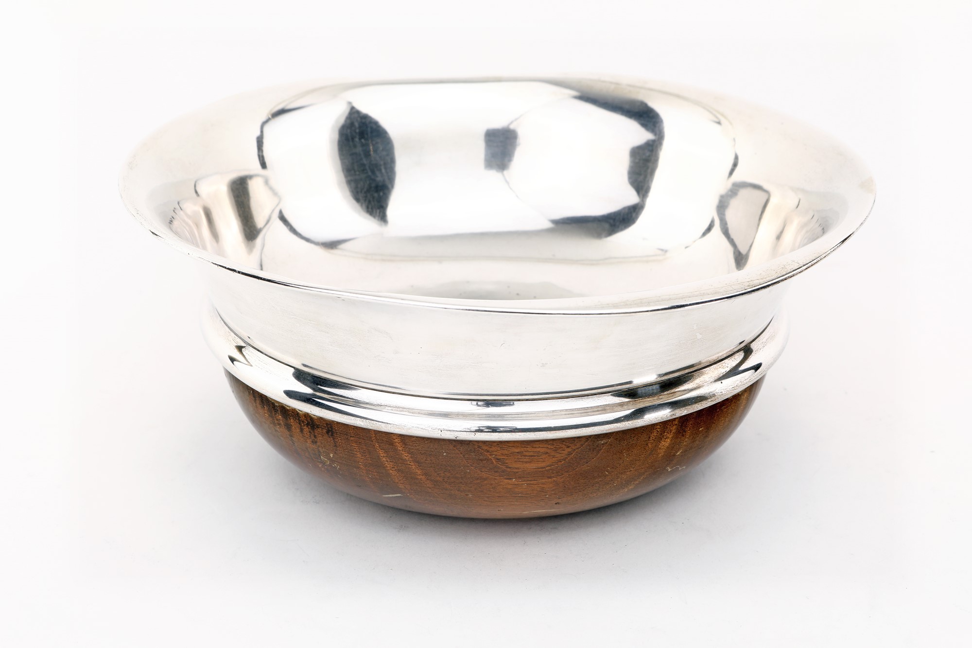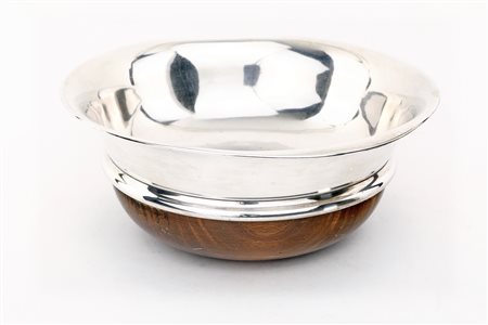 Coppa centrotavola in legno e argento 925 base in legno e vasca in argento, cm 12x29