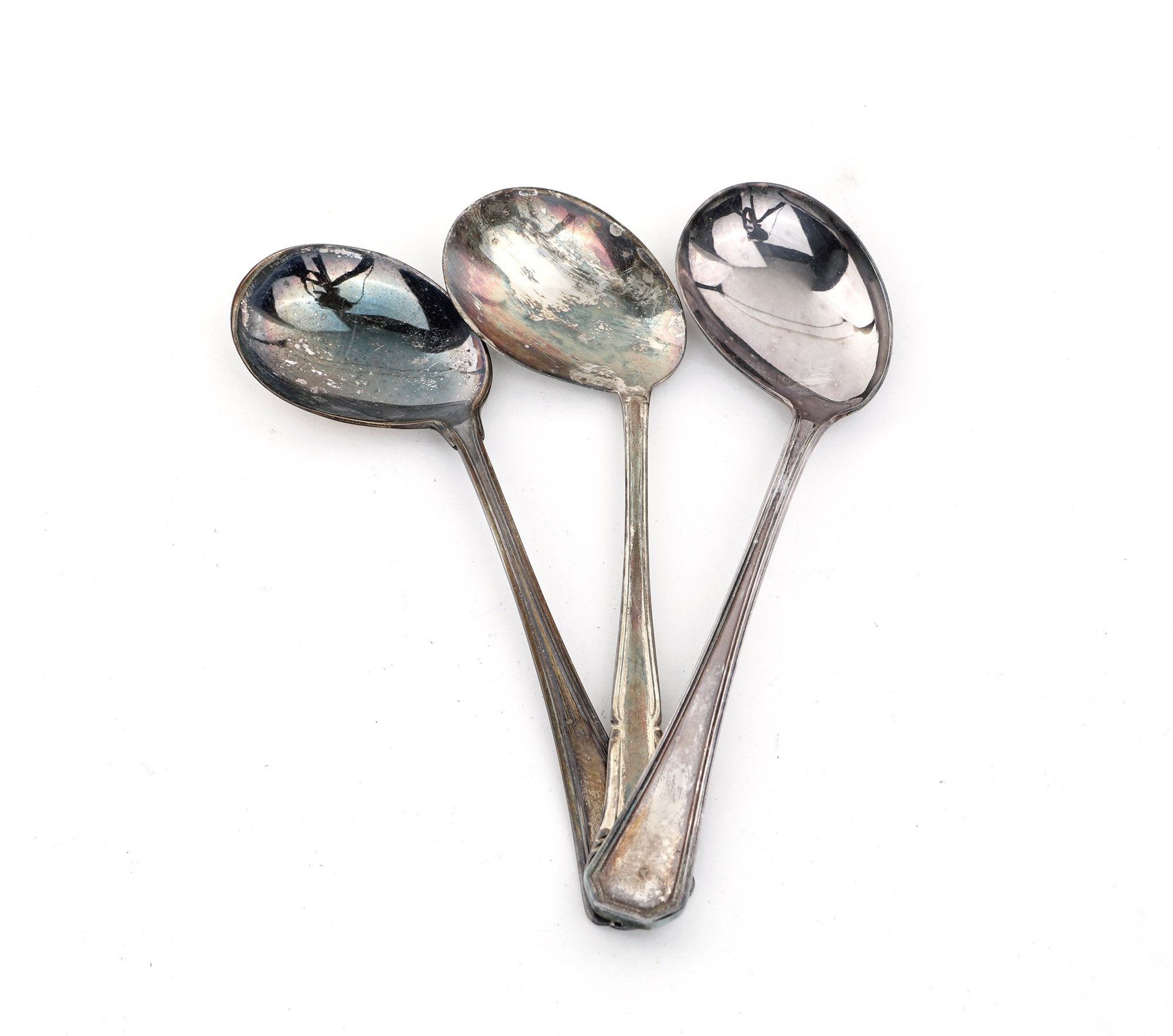Tre cucchiai da pappa in argento cm 13 - peso complessivo gr. 62