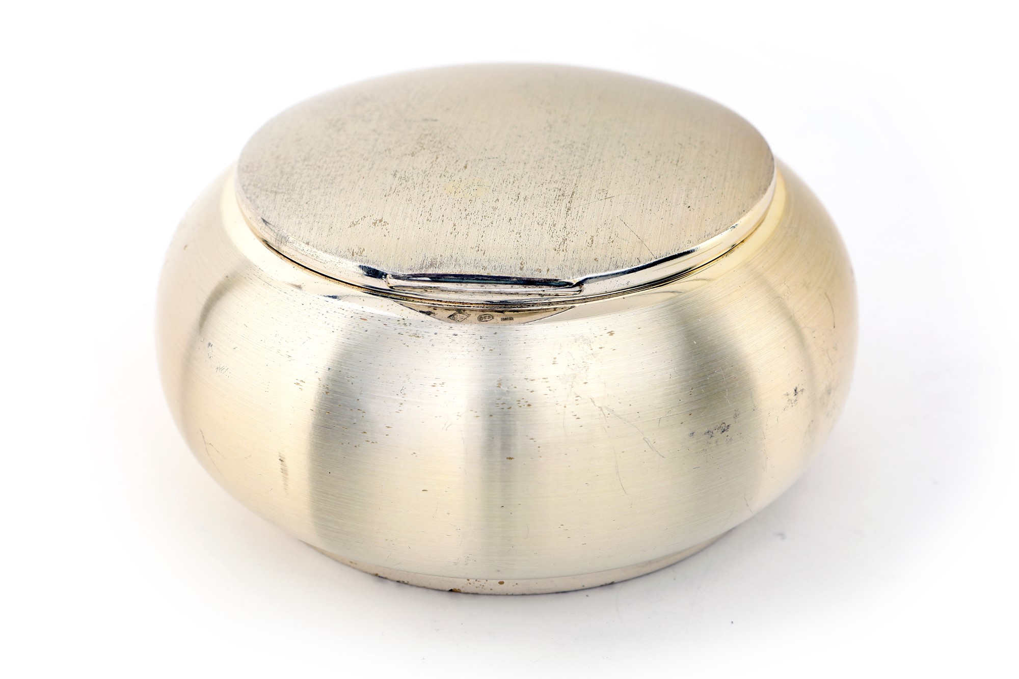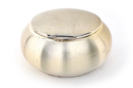 Scatola portagioie di forma sferica schiacciata a superficie satinata e interno rivestito in velluto blu, cm 7x12 - gr. 300 lordi