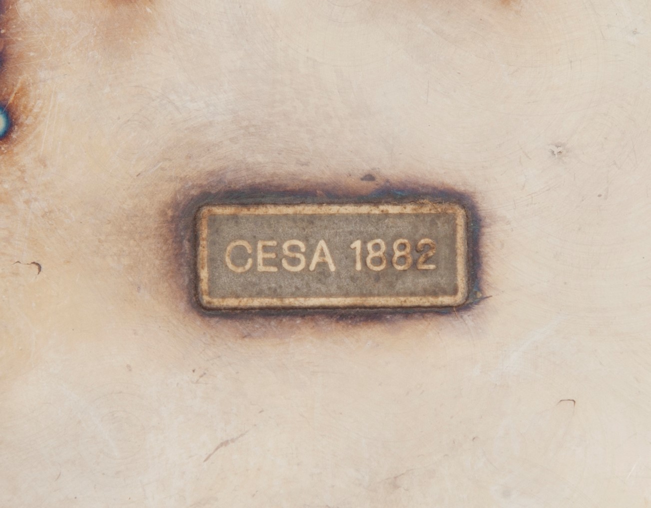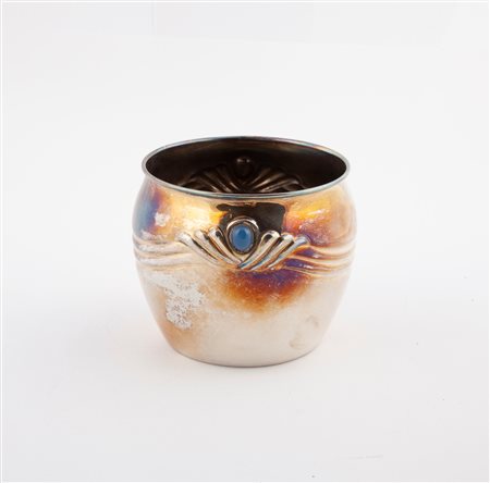 Piccolo cache pot, argentiere Cesa con gemma cabochon azzurra; una gemma mancante, cm 9,5x10,5 - gr. 160