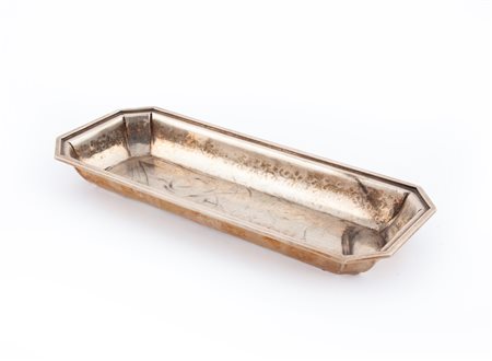 Vaschetta portapenne in argento di forma rettangolare con angoli scantonati, cm 3x27,5x11,3 - gr. 318