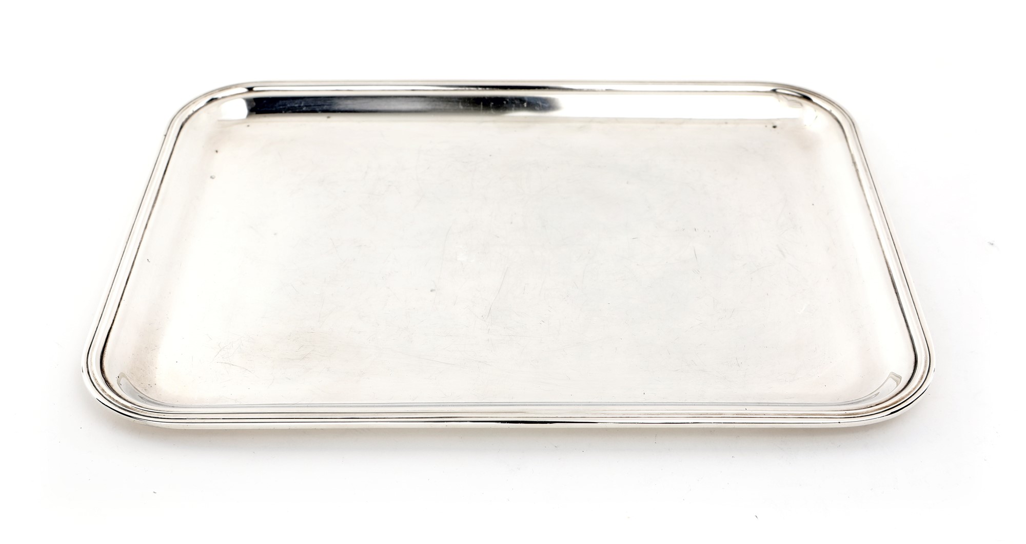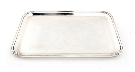 Vassoio rettangolare in argento con angoli arrotondati ed orlo modanato, cm 29x21 - gr. 448