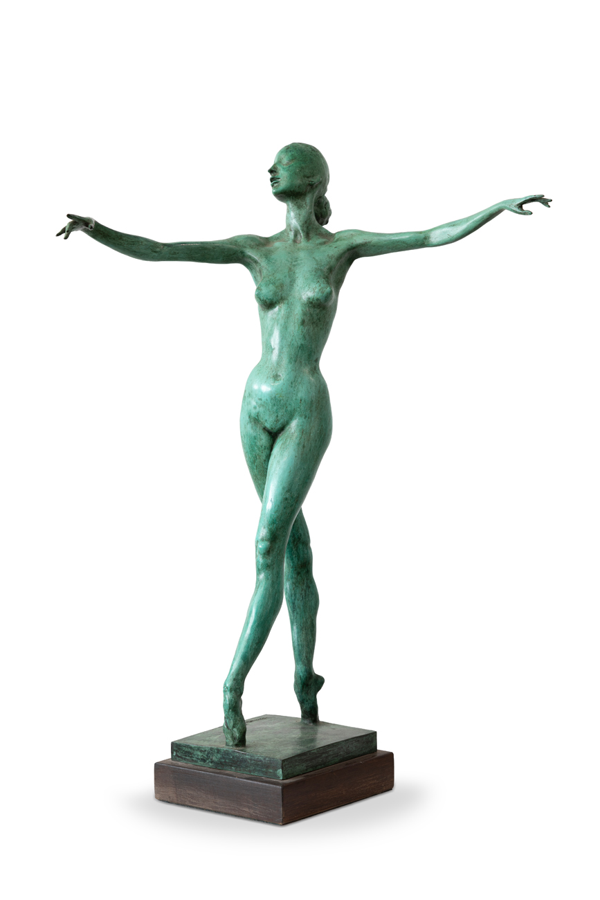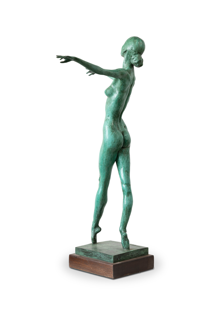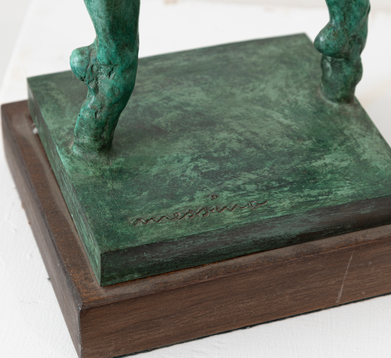Scultura im bronzo patinato verde